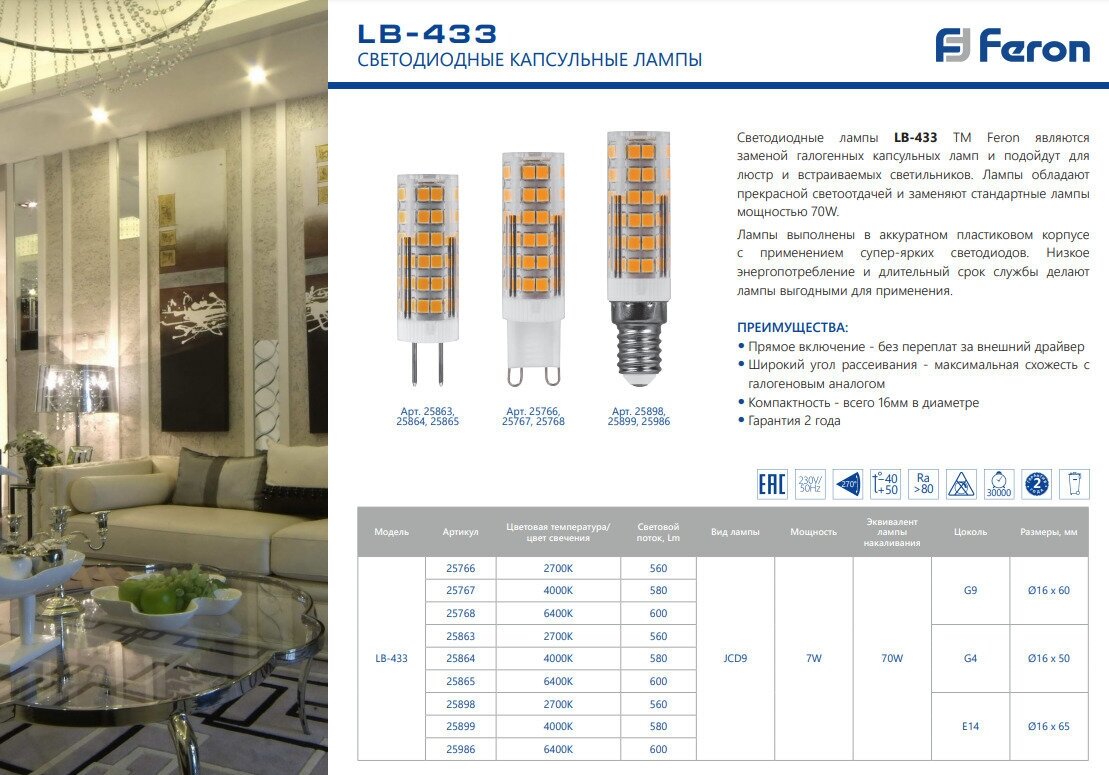 Лампа LB-433 7W 230V E14 4000K 25899
