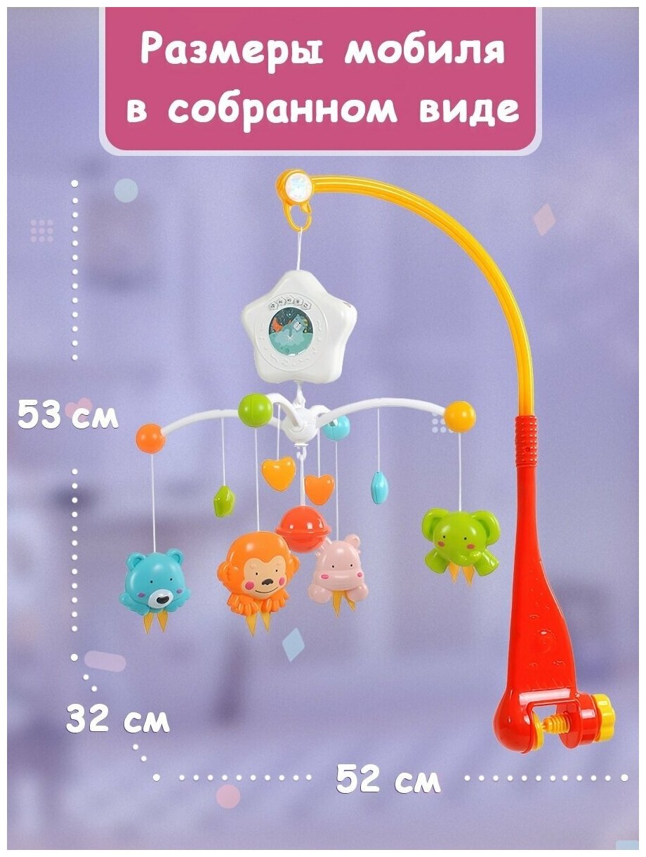 | Дополнительная информация | количество подвесных игрушек: 5; количество мелодий и звуков: 12; вес мобиля: 600 гр |