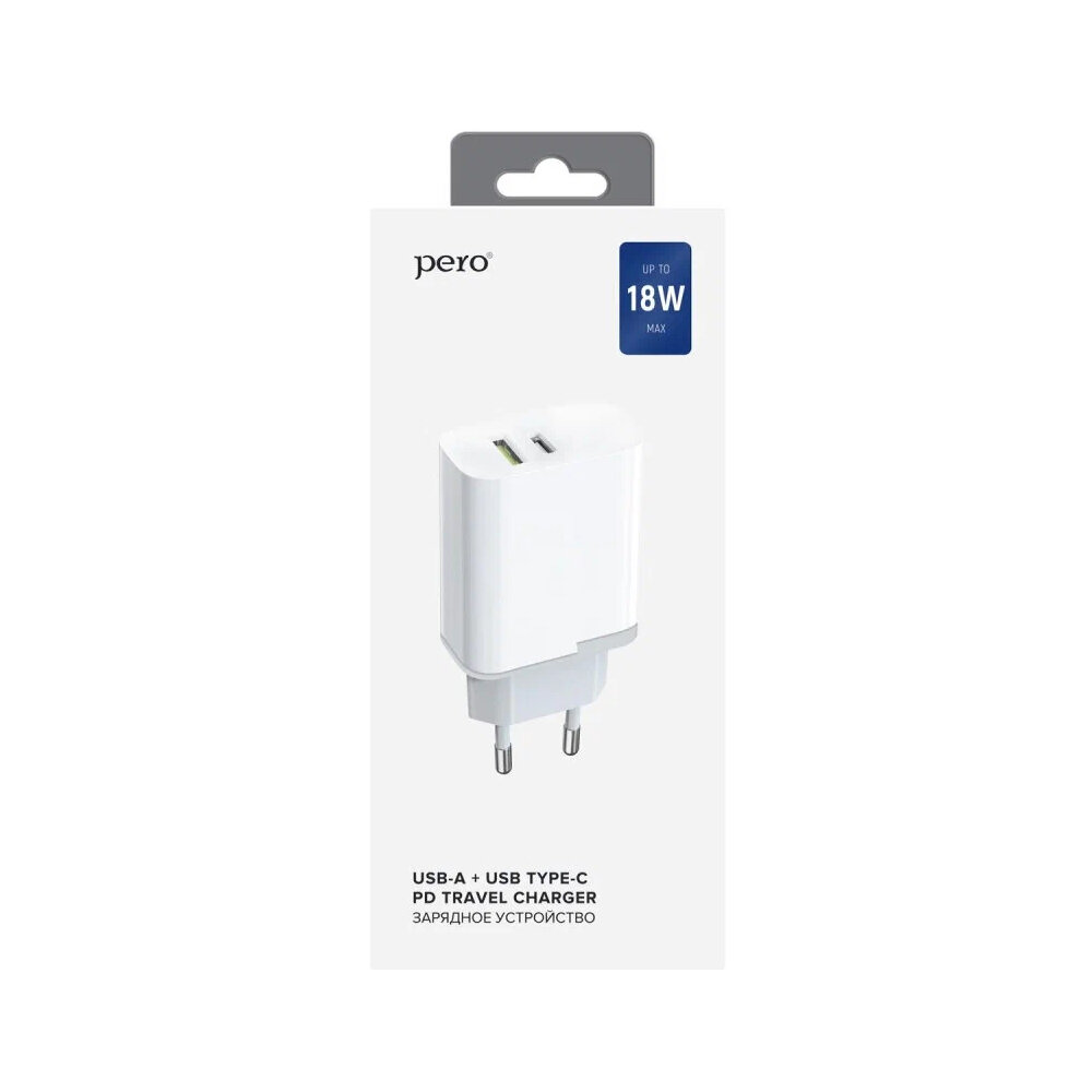 Сетевое зарядное устройство Pero TC05 PD 18W + USB-A Fast Charge, белый