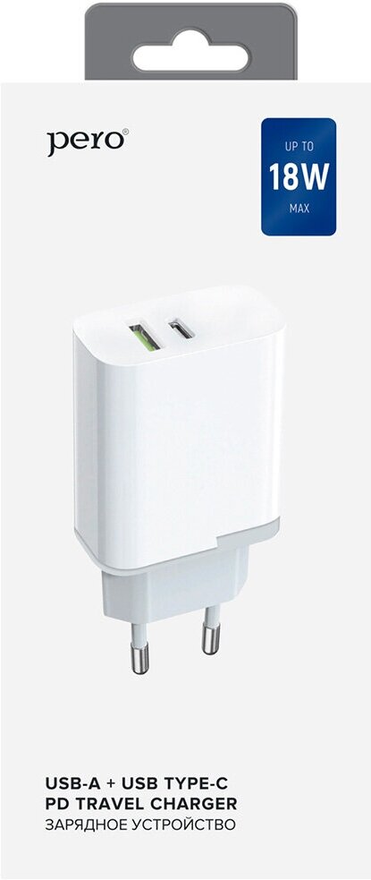 Сетевое зарядное устройство PERO TC05 PD 18W + USB-A Fast Charge (Белый)