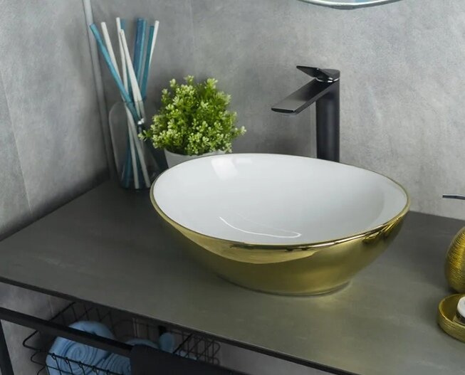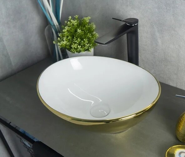 Раковина накладная Gid Nc999 40,5х34 см, белая/золото