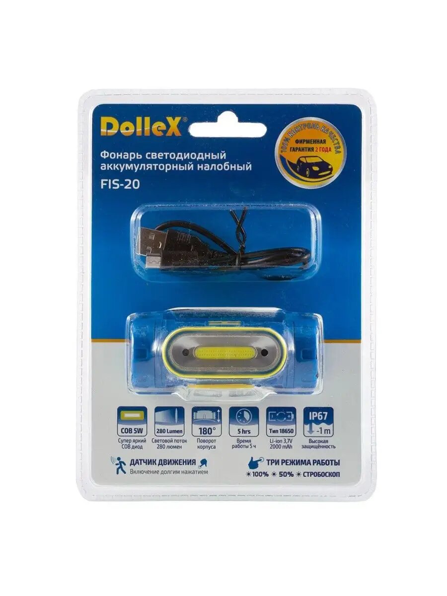 DOLLEX FIS20 Фонарь DOLLEX налобный аккум Li-ion 3.7V 2000mA COB 5W датчик движения стробоскоп