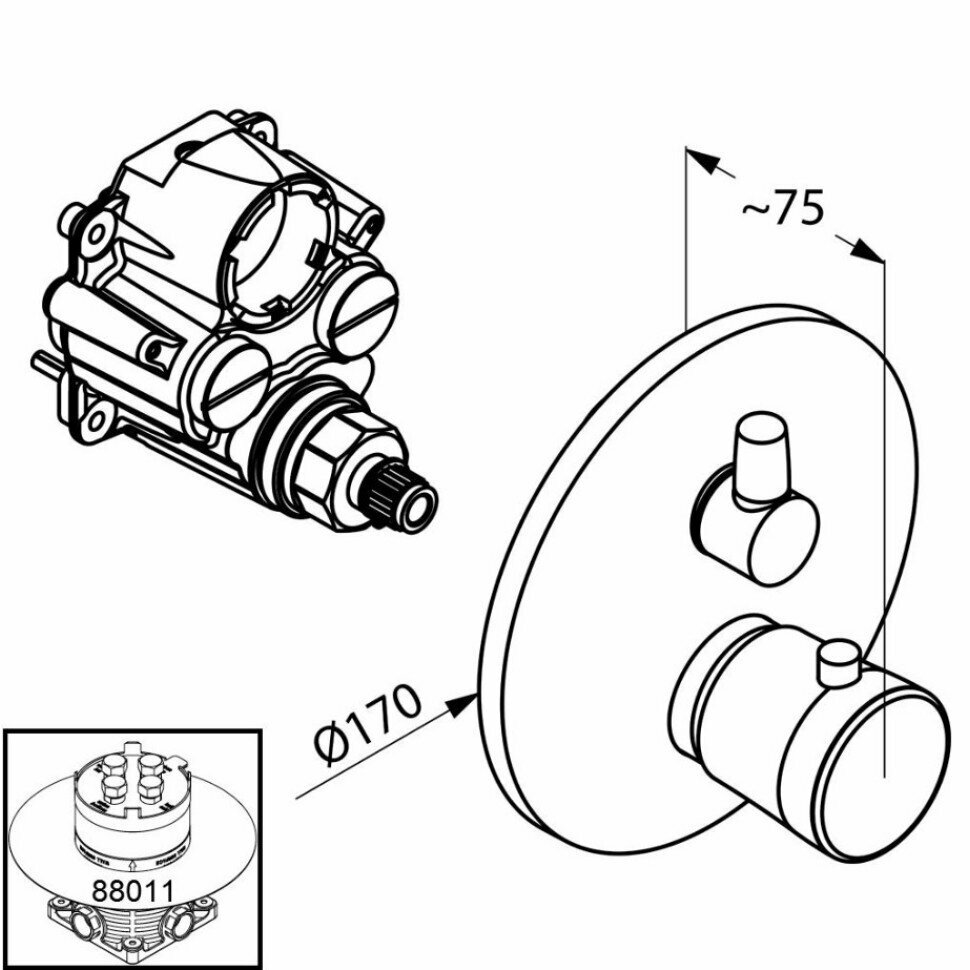 Встраиваемый смеситель KLUDI 528300575 BALANCE Смеситель для ванны/душа с термостатом, встраиваемый, хром
