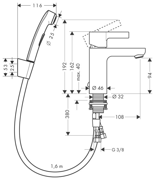 Metris S, гигиенический душ со смесителем на раковину, арт. 31160000, Hansgrohe