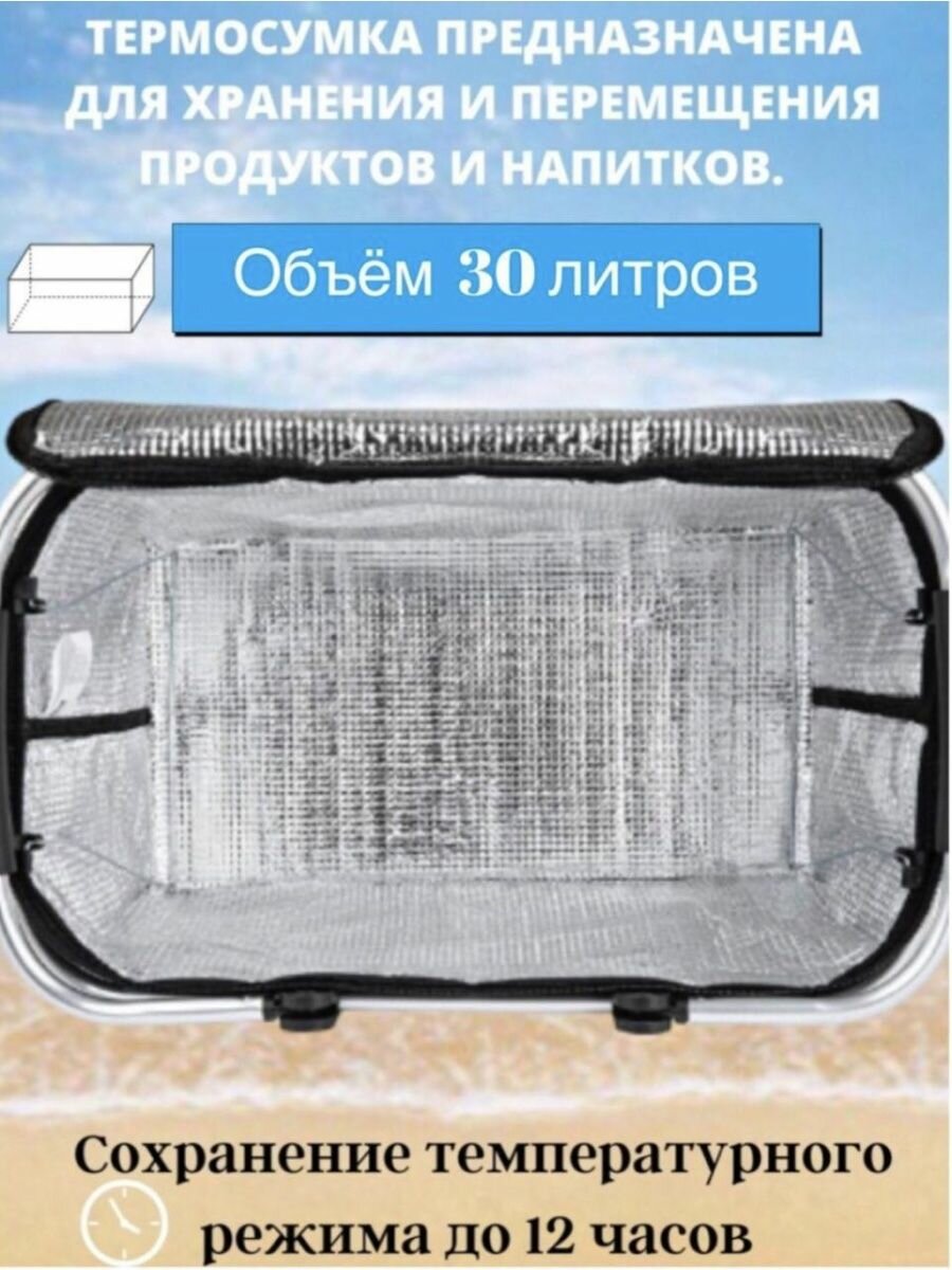 Термосумка холодильник / Складная сумка для пикника 30 литров / черная интересное: