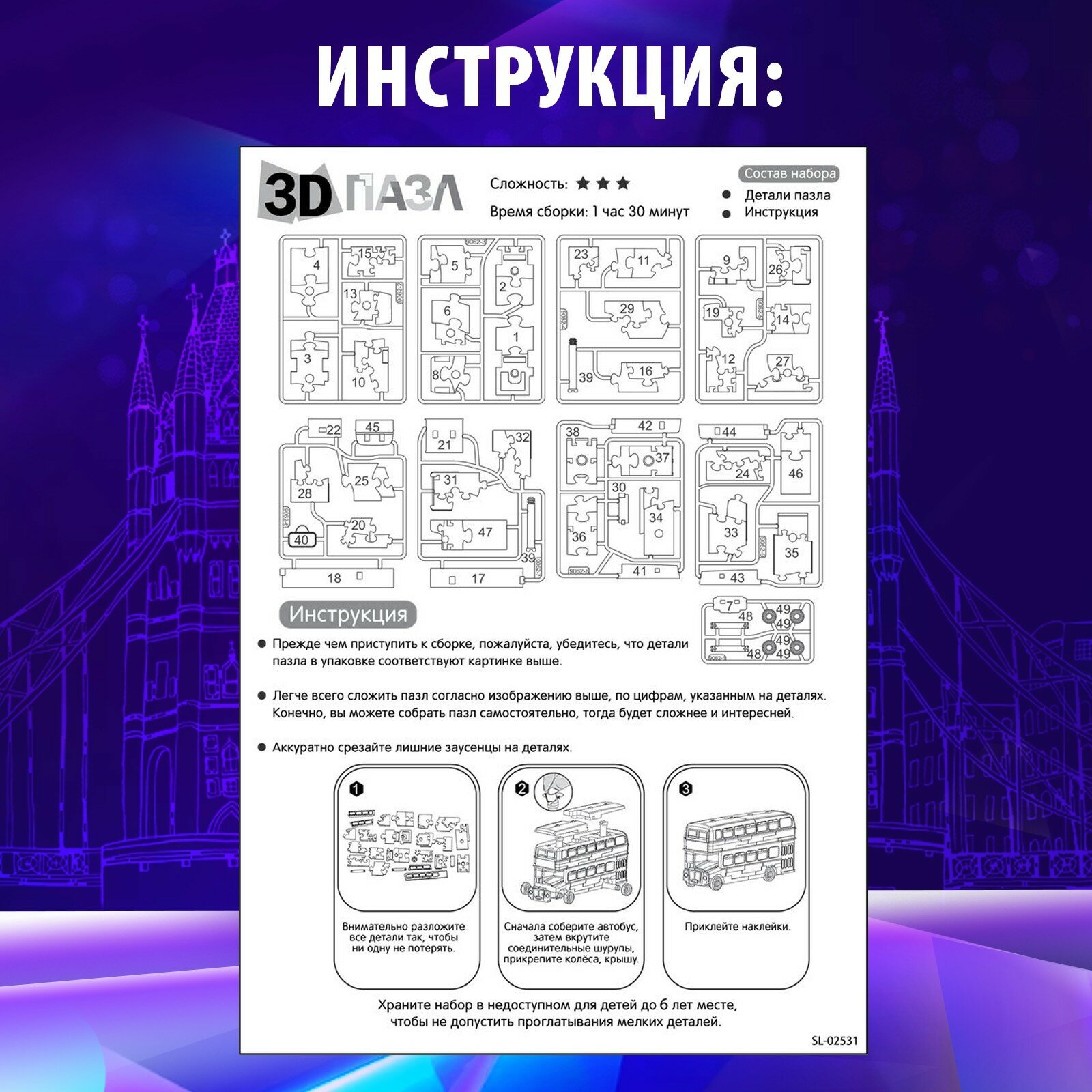 ZABIAKA Пазл 3D «Лондонский автобус», микс. "Микс" - один из товаров представленных на фото, без возможности выбора.