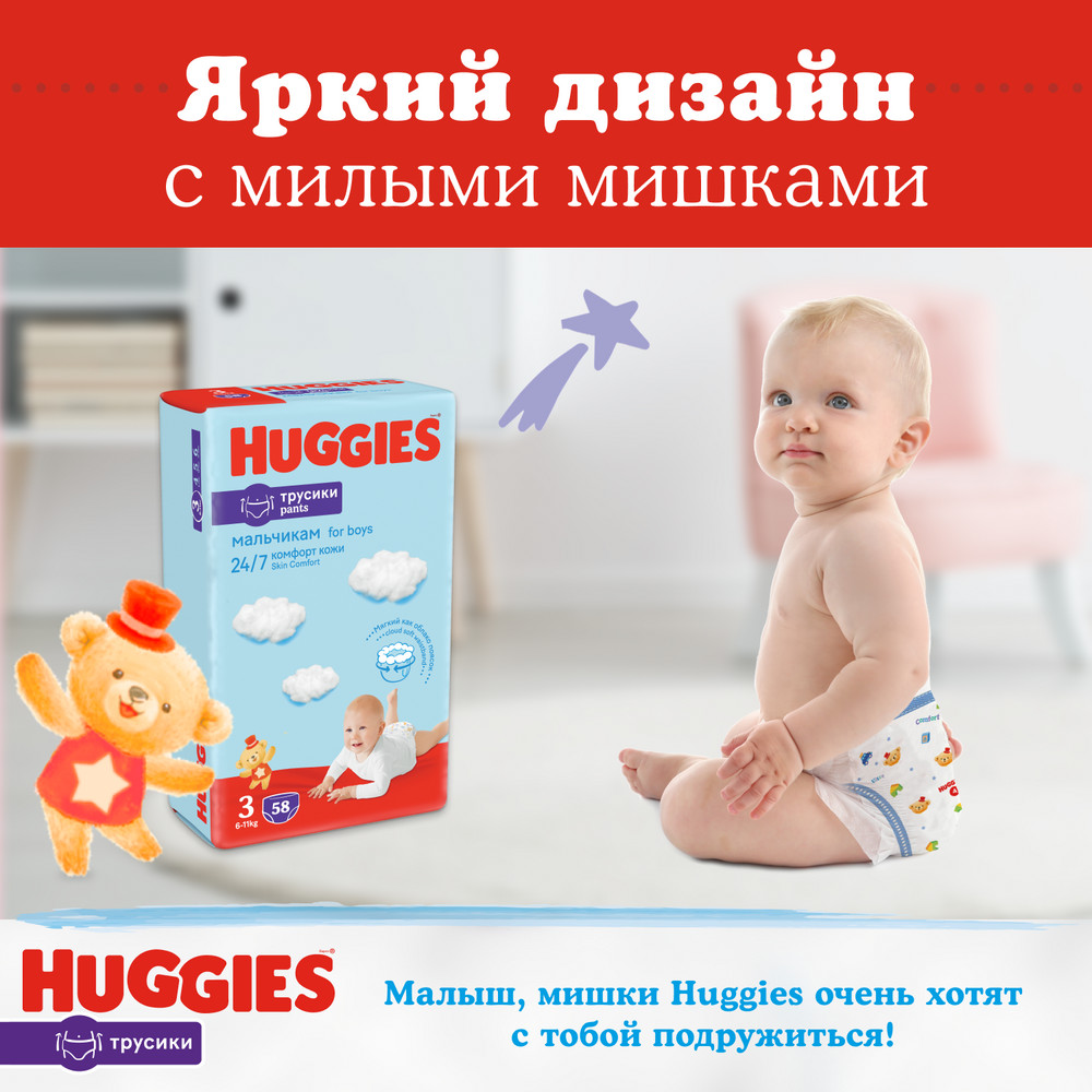 Трусики-подгузники для мальчиков Huggies 5, 12-17кг, 48шт.