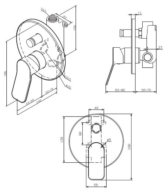 Смеситель для ванны и душа AM.PM X-Joy F85A45000 монтируемый в стену
