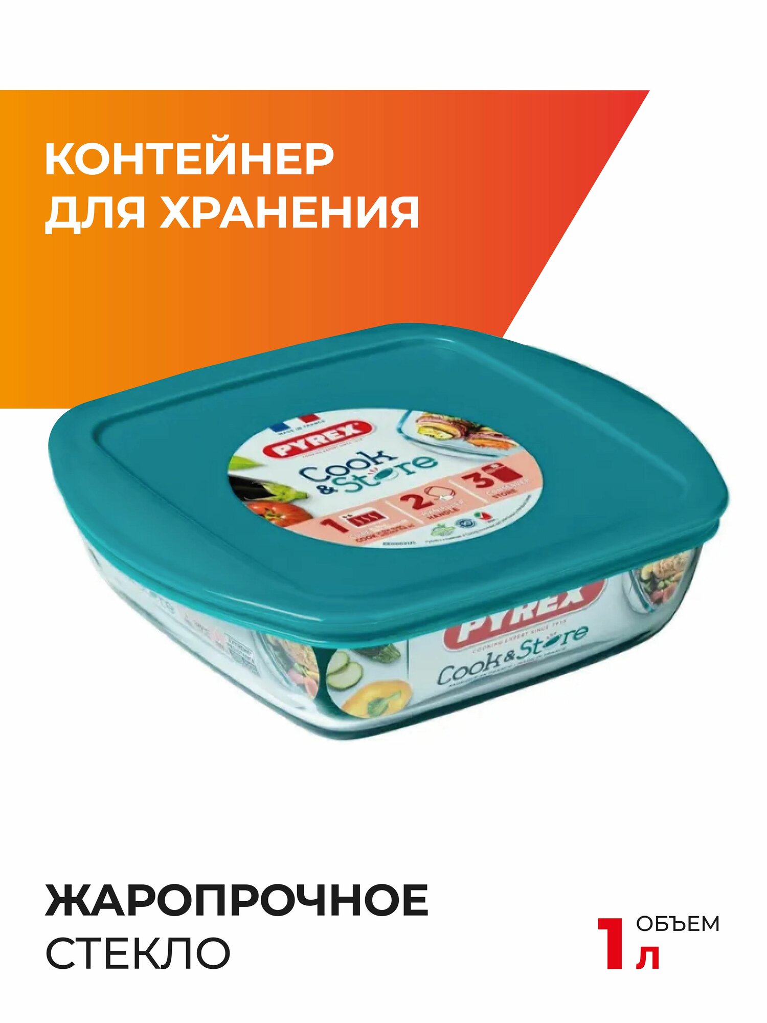 СохранитьБлюдо с крышкой Cook&Store 20x17x5.5см 1л квадратное,PYREX интересное: