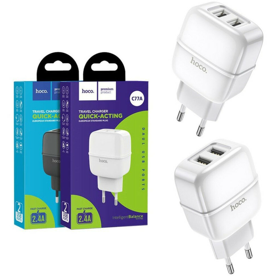 Сетевое зарядное устройство hoco. C77A Highway 2xUSB 2.4A - белый