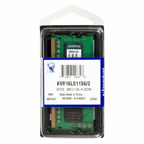 Модуль оперативной памяти Kingston Модуль оперативной памяти SO-DIMM 2ГБ DDR3L SDRAM Kingston ValueRAM KVR16LS11S6/2 (PC12800, 1600МГц, CL11) (ret)