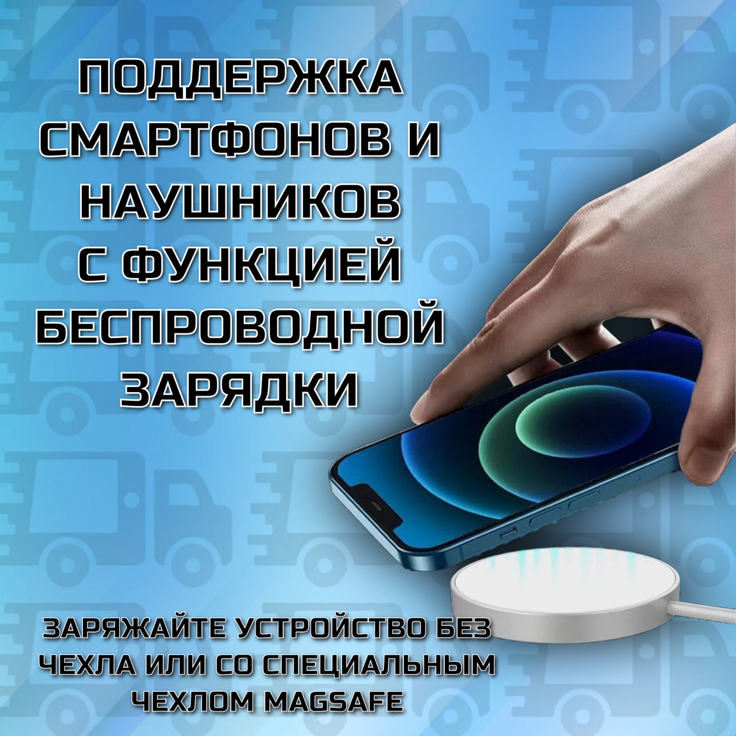 | Плюсы: | iPhone 12 Pro max, 13  Pro max Заряжает примагничивается к задней стенке, что очень удобно |