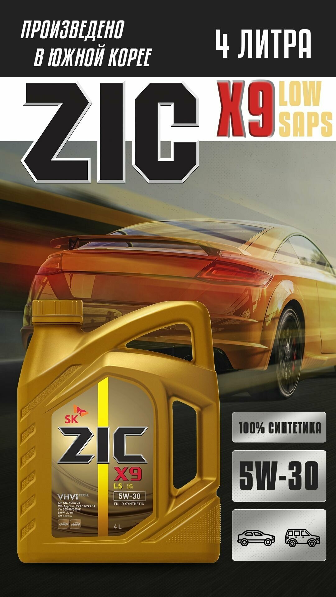 ZIC 162608 ZIC X9 LS 5W30 (4L)_масло мотор.!синт.\API SN/CF, ACEA C3, MB 229.51, VW 505.00/505.01, Dexos 2