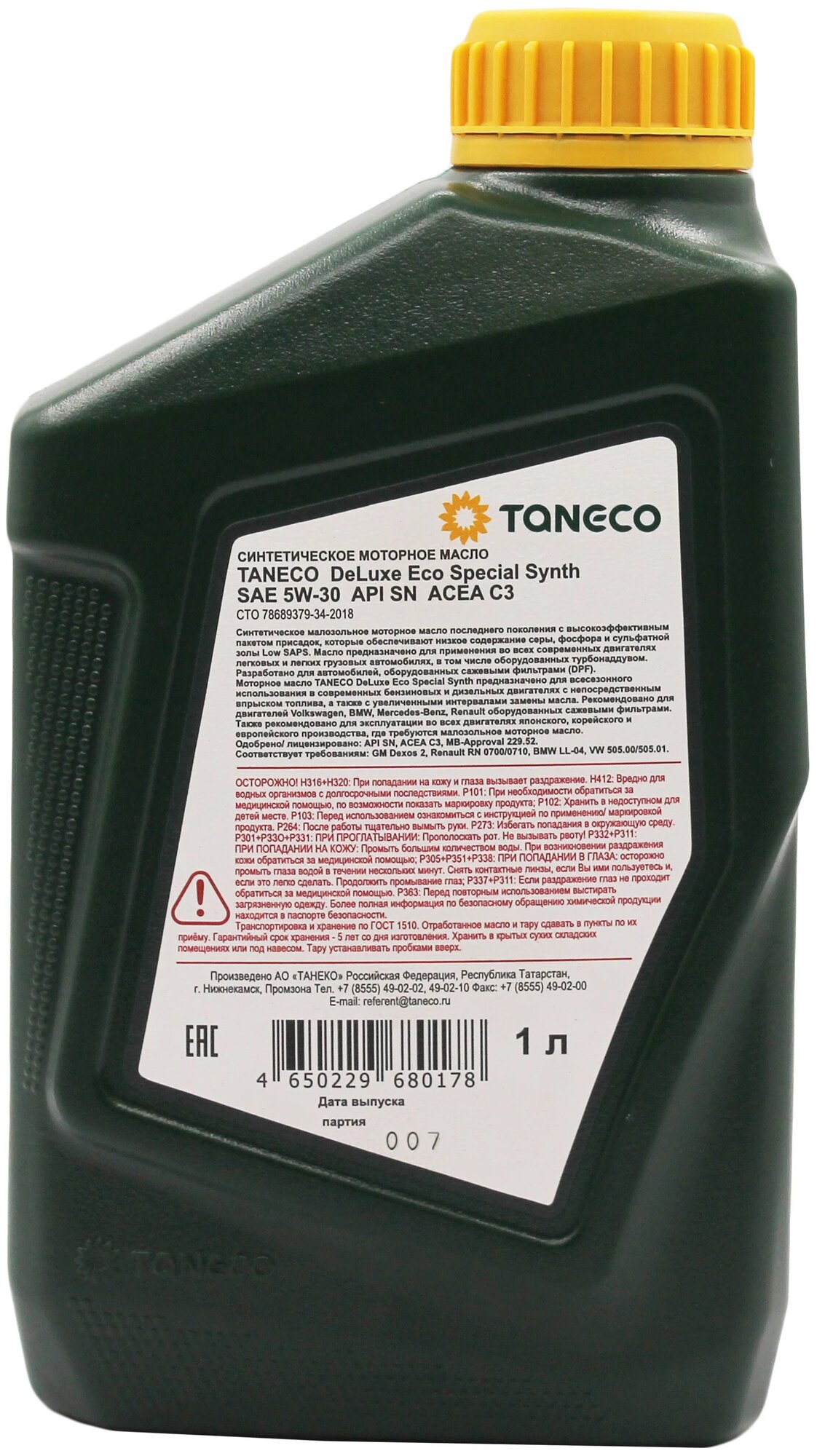 Taneco Масло Моторное Deluxe Eco Special Synth 5w30 Api Sn Acea C3 4l
