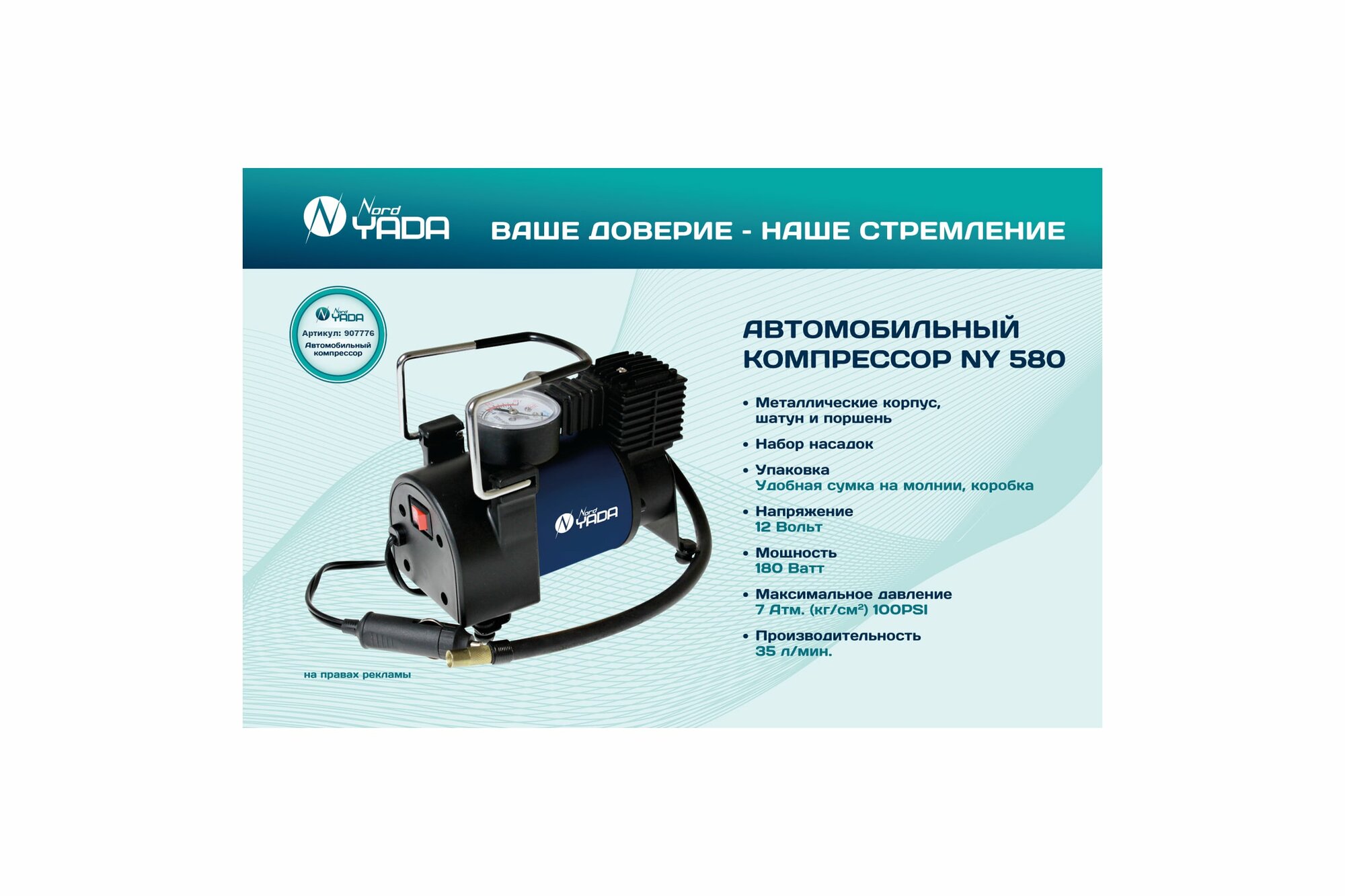 Купить NORD YADA 907776 Компрессор автомобильный мощный (NY 580) 35л/мин металличес кий шатун и поршень TM Nord YADA