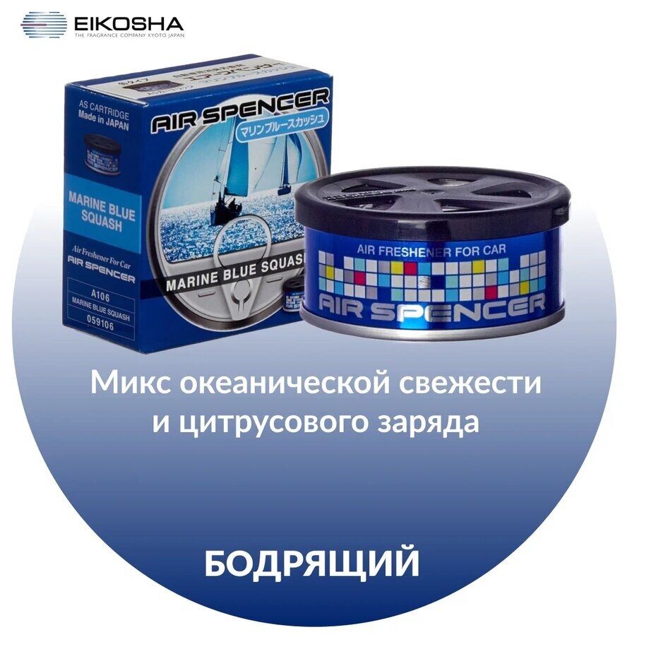 EIKOSHA ароматизатор для машины и дома меловой Air Spenser - MARINE BLUE SQUASH / Свежесть океана, автомобильный парфюм, арт. A106