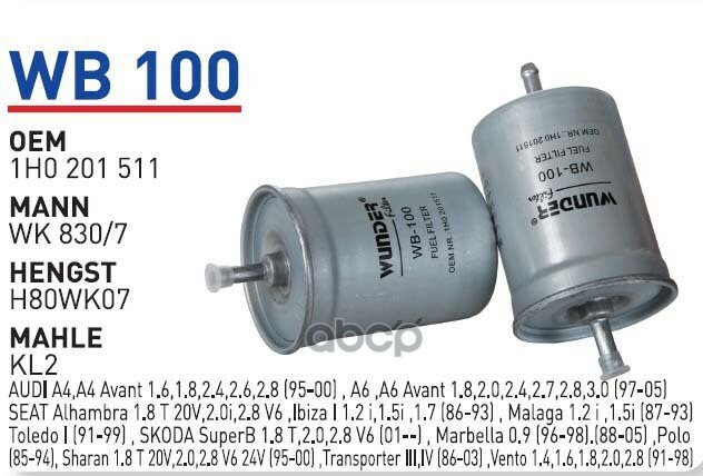 WUNDER-FILTER WB100 Фильтр топливный AD VW BMW MB NISSAN WUNDER FILTER WB100