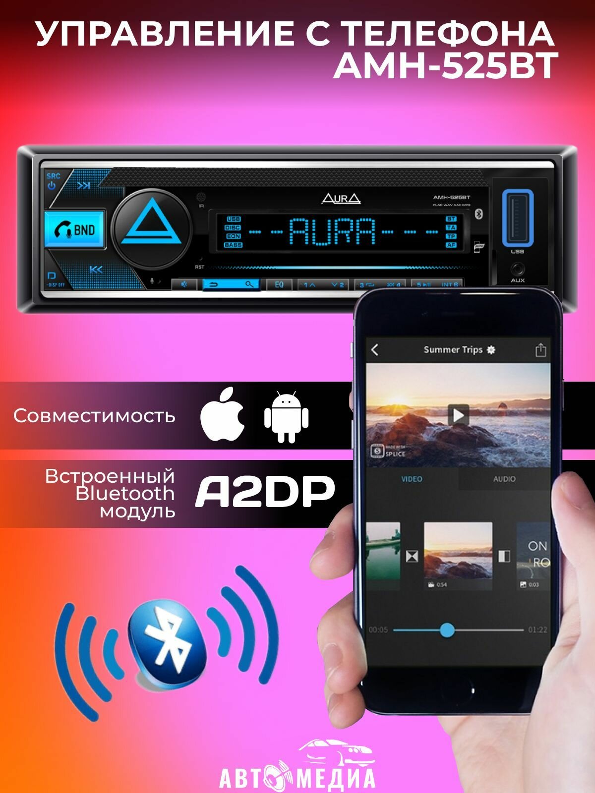 Ниже Вы можете прочитать отзывы на Автомагнитола Aura AMH-525BT /Подключение кнопок на руле/ Bluetooth / FLAC, MP3 / RGB-подсветка / 10-полосный эквалайзер /, ознакомится с подробными характеристиками, посмотреть интересные обзоры и фотографии на Автомагнитола Aura AMH-525BT /Подключение кнопок на руле/ Bluetooth / FLAC, MP3 / RGB-подсветка / 10-полосный эквалайзер /.