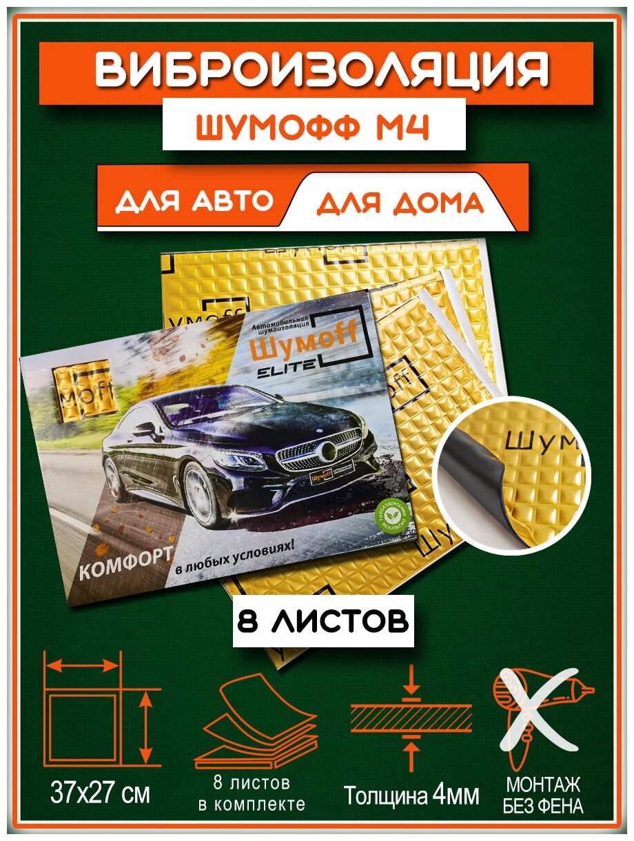 Виброизоляция Шумоff M4 / Шумоизоляция для автомобиля / квартиры / дачи (8 листов / 0,8кв.м)