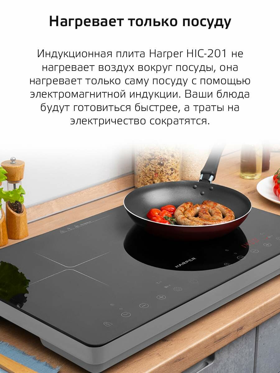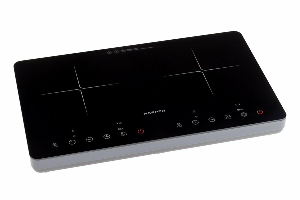 Индукционная плита настольная HARPER HIC-201 / стеклокерамика / 2 конфорки, сенсорное управление, таймер приготовления, черная
