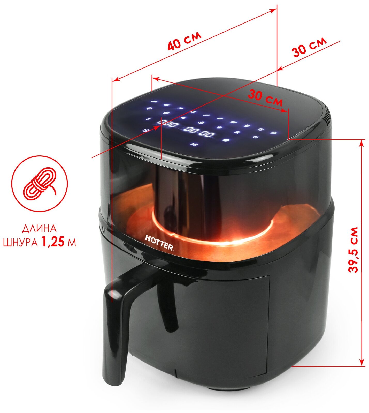 Купить Аэрогриль HOTTER HX-533 с функцией пара. чёрный, 12 автопрограмм, 6 режимов приготовления, 1500 Вт, 7,5 литра, обзорное окно