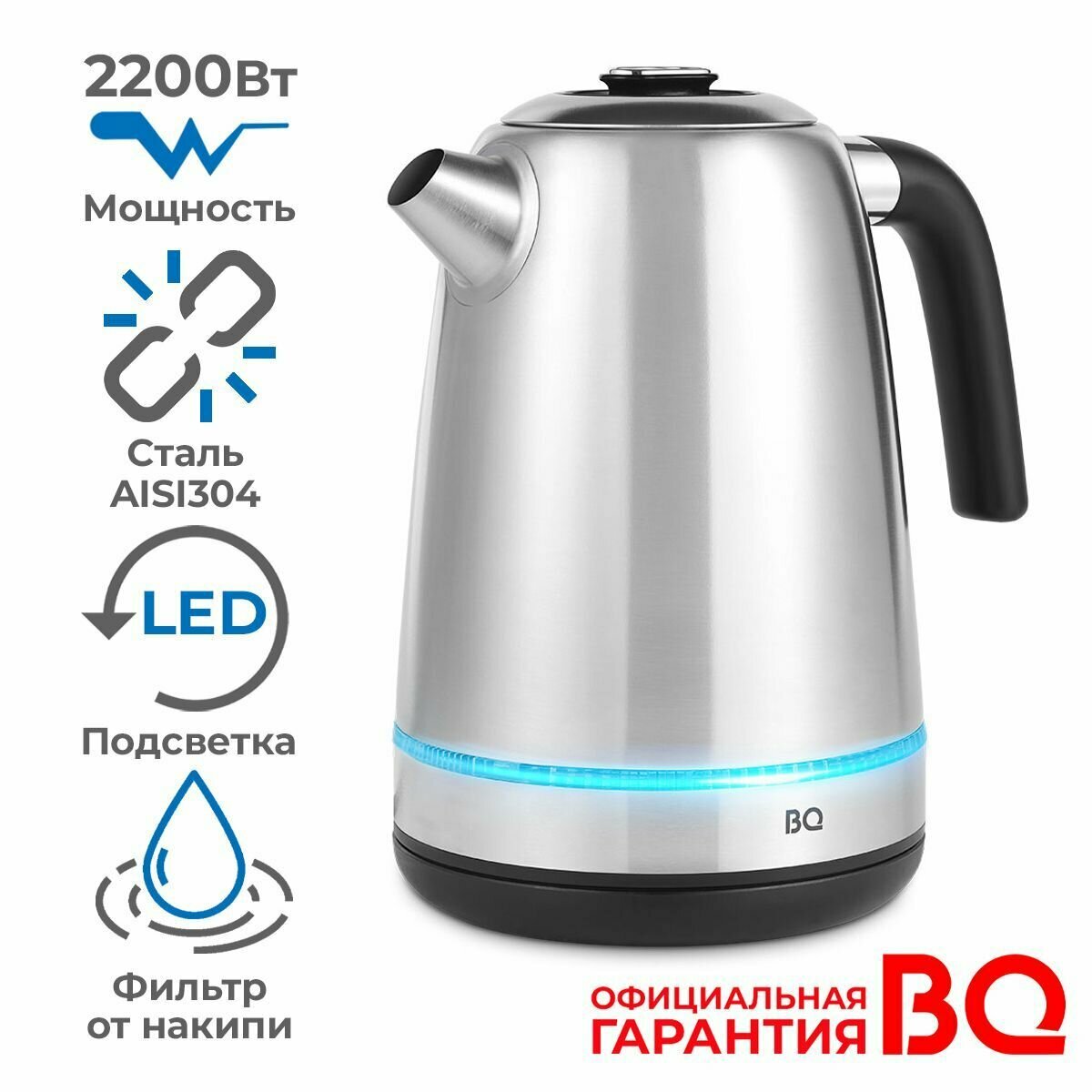Чайник BQ KT1725SW Сталь-Чёрный