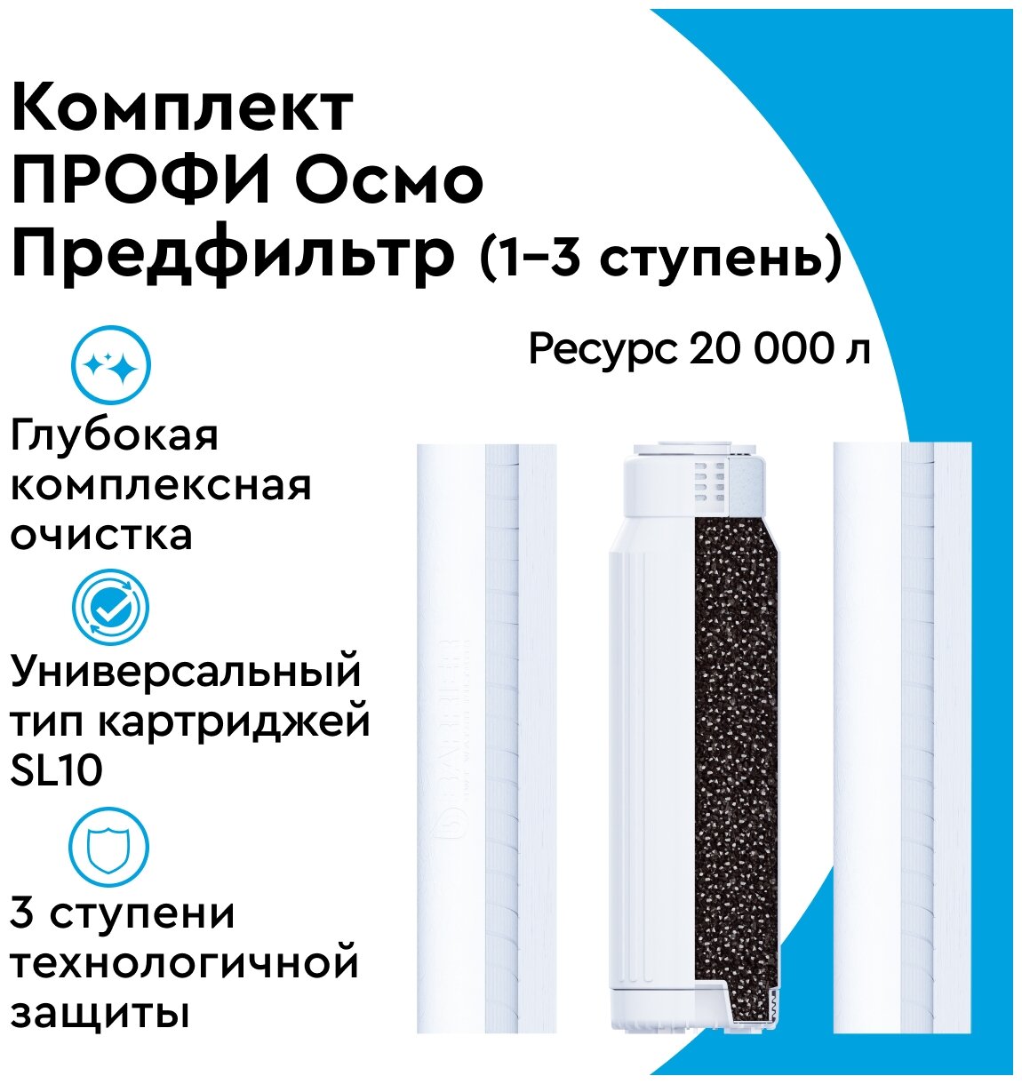 БАРЬЕР профи осмо Предфильтр (1-3 ступени), комплект картриджей для фильтра обратного осмоса под мойку, предварительная очистка, SL10