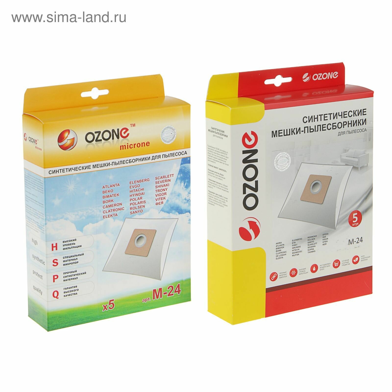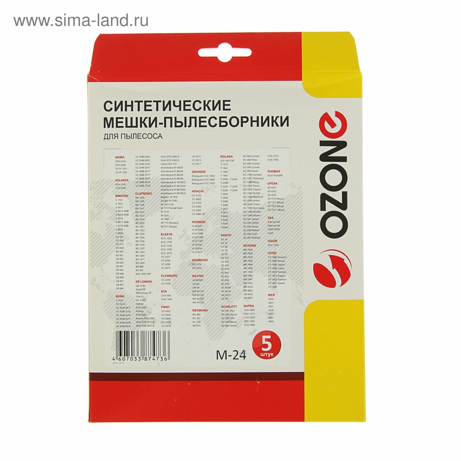 Синтетические мешки-пылесборники Ozone M-24 для пылесоса SCARLETT, BORK, VITEK, BIMATEK, ROLSEN, VIGOR, UFESA, 5 шт