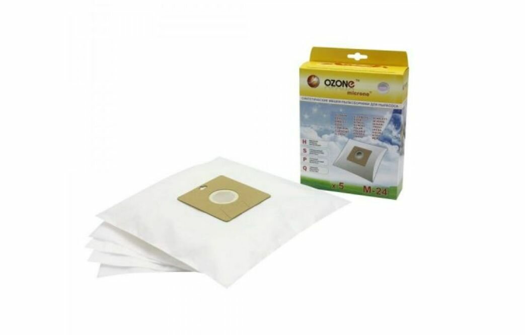 M-24 Мешки-пылесборники Ozone синтетические для пылесоса, 5 шт + микрофильтр
