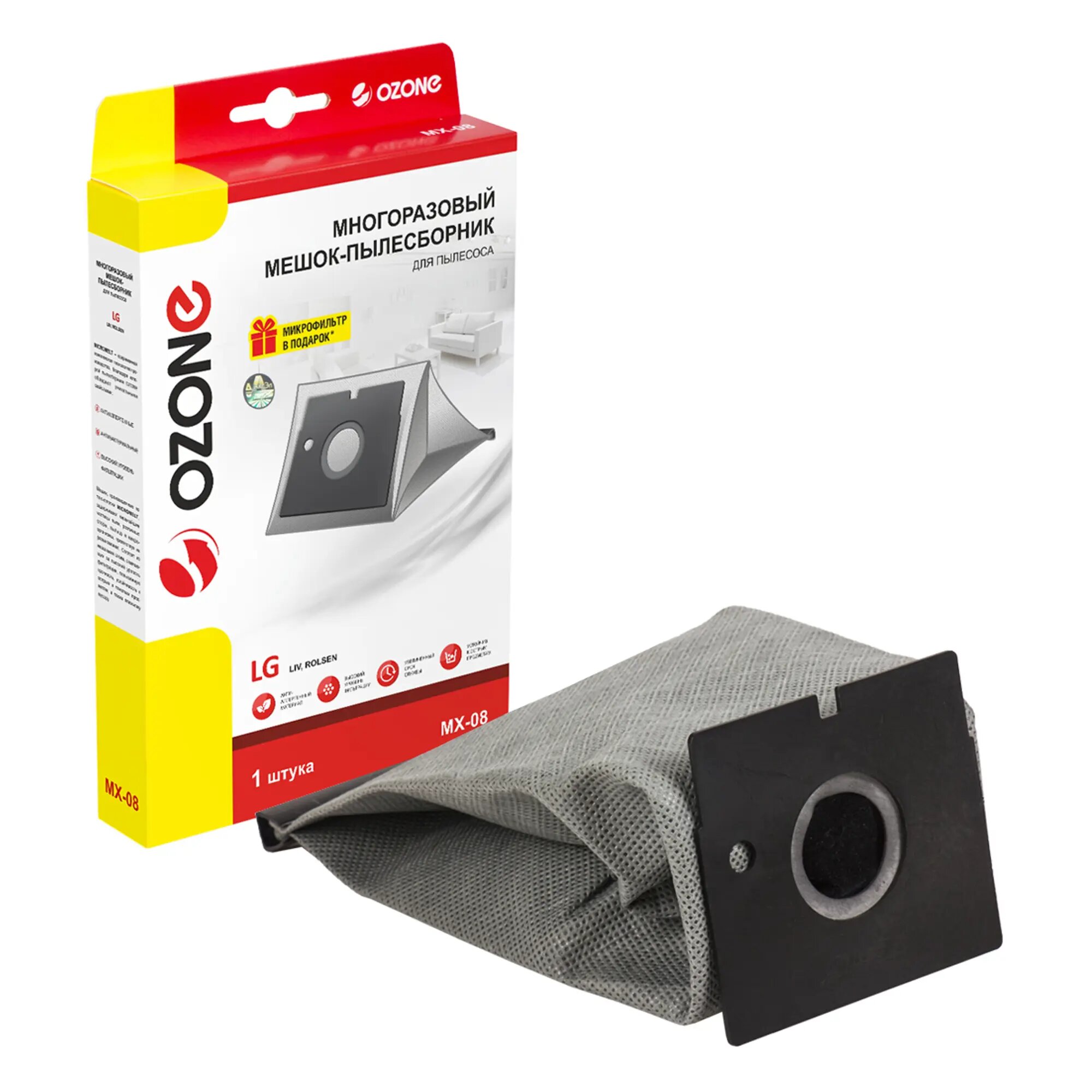 Многоразовый мешок-пылесборник Ozone MX-08 для пылесоса LG, ROLSEN, LIV, 1 шт