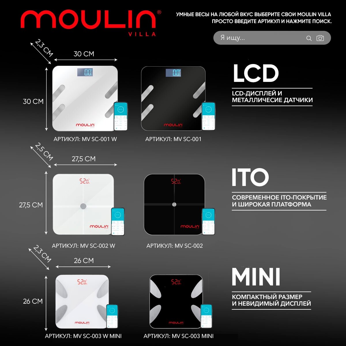 Умные весы Moulin Villa MV SC-003 mini / весы напольные электронные / напольные весы / диагностические весы / весы напольные мини, черный