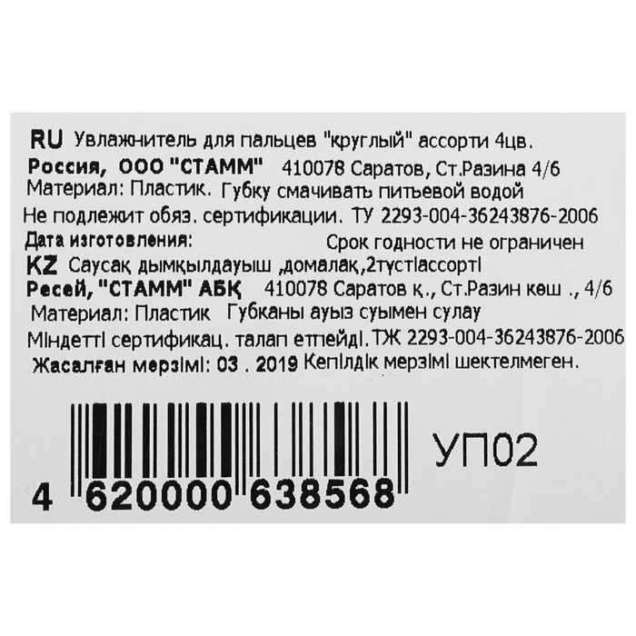 Стамм Увлажнитель для пальцев круглый, 4 цвета, микс