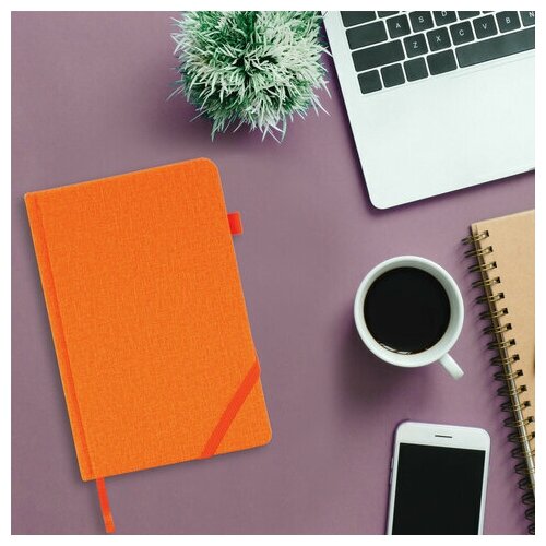 Купить Ежедневник недатированный А5 (138x213 мм) BRAUBERG "Finest", 136 л., кожзам, резинка, оранжевый, 111873