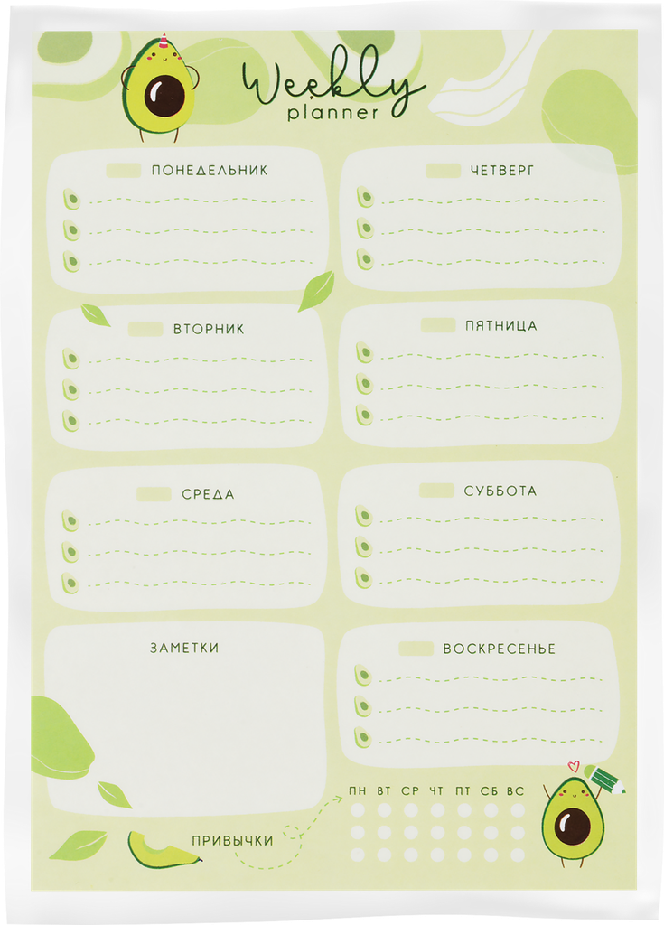 Планер на неделю MESHU 210*148мм (А5), "Avocado", на склейке интересное:
