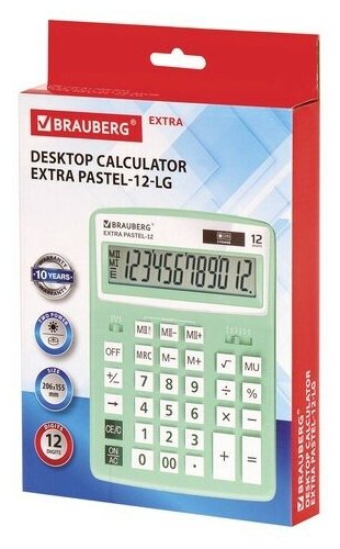 Купить Калькулятор настольный BRAUBERG EXTRA PASTEL-12-LG (206x155мм), 12 разрядов, мятный, 250488