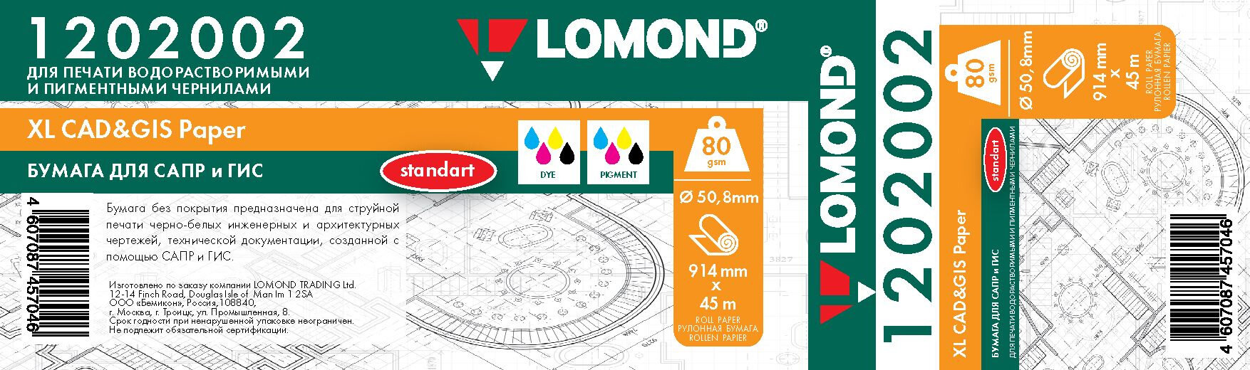 Бумага Lomond (914 мм x 45 м, 80 г/м2) (1202002)