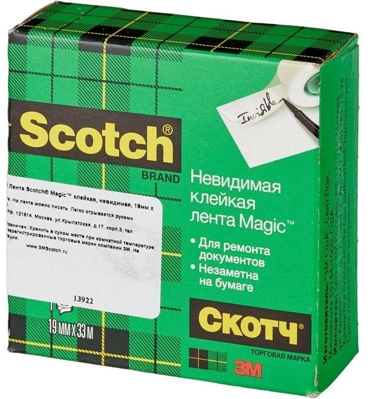 Лента невидимая клейкая Scotch 810 Magic в коробочке, 19мм х 33м интересное:
