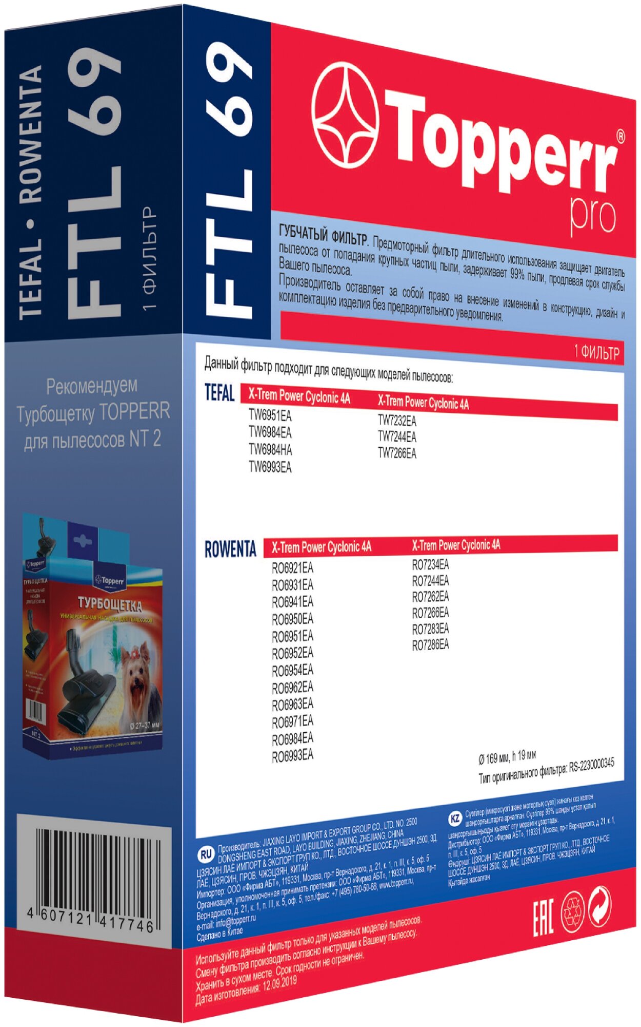 Topperr Губчатый фильтр для пылесоса TEFAL, ROWENTA, 1 шт., FTL 69