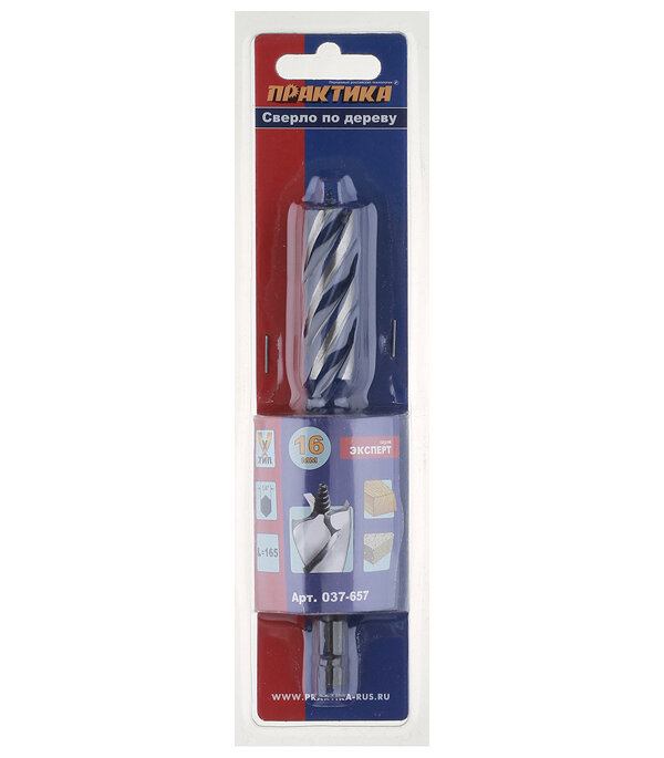 Сверло по дереву X-тип (16x165 мм; в блистере) ПРАКТИКА 037-657