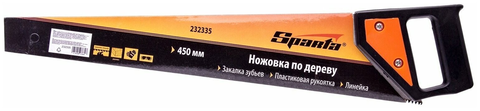 Ножовка по дереву, 450 мм, 5-6 TPI, каленый зуб, линейка, пластиковая рукоятка Sparta 232335