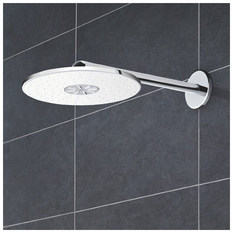 | Дополнительная информация | душевой кронштейн 400 мм; верхний душ с двумя режимами струи: GROHE PureRain; GROHE ActiveRain |