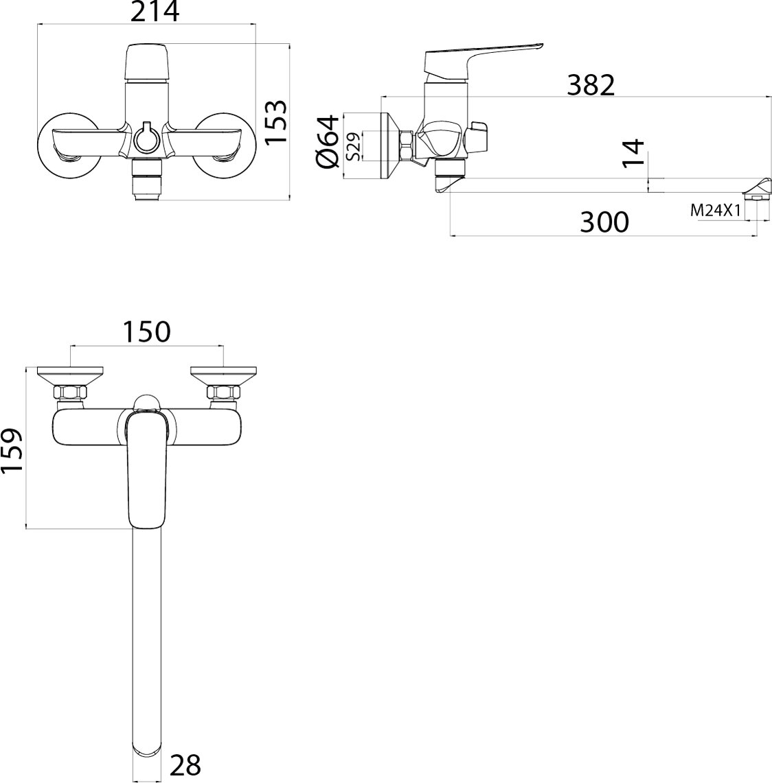 Смеситель для ванны и умывальника 35к IDDIS SIGSBL2i10WA "Sign" без душ. аксессуаров, хром