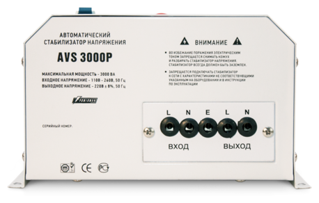 Powerman Стабилизатор POWERMAN AVS 3000P, ступенчатый регулятор, цифровые индикаторы уровней напряжения, 3000ВА, 110-260В, максимальный входной ток 20А, клеммная колодка, IP-20, навесной, 260мм х 220мм х 130мм, 7.2 кг./ Stabilizer POWERMAN AVS 3000P, step