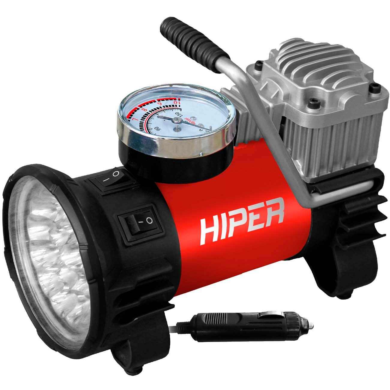 Компрессор автомобильный HIPER HAC45 / LED лампа / аналоговый манометр / 10 атмосфер
