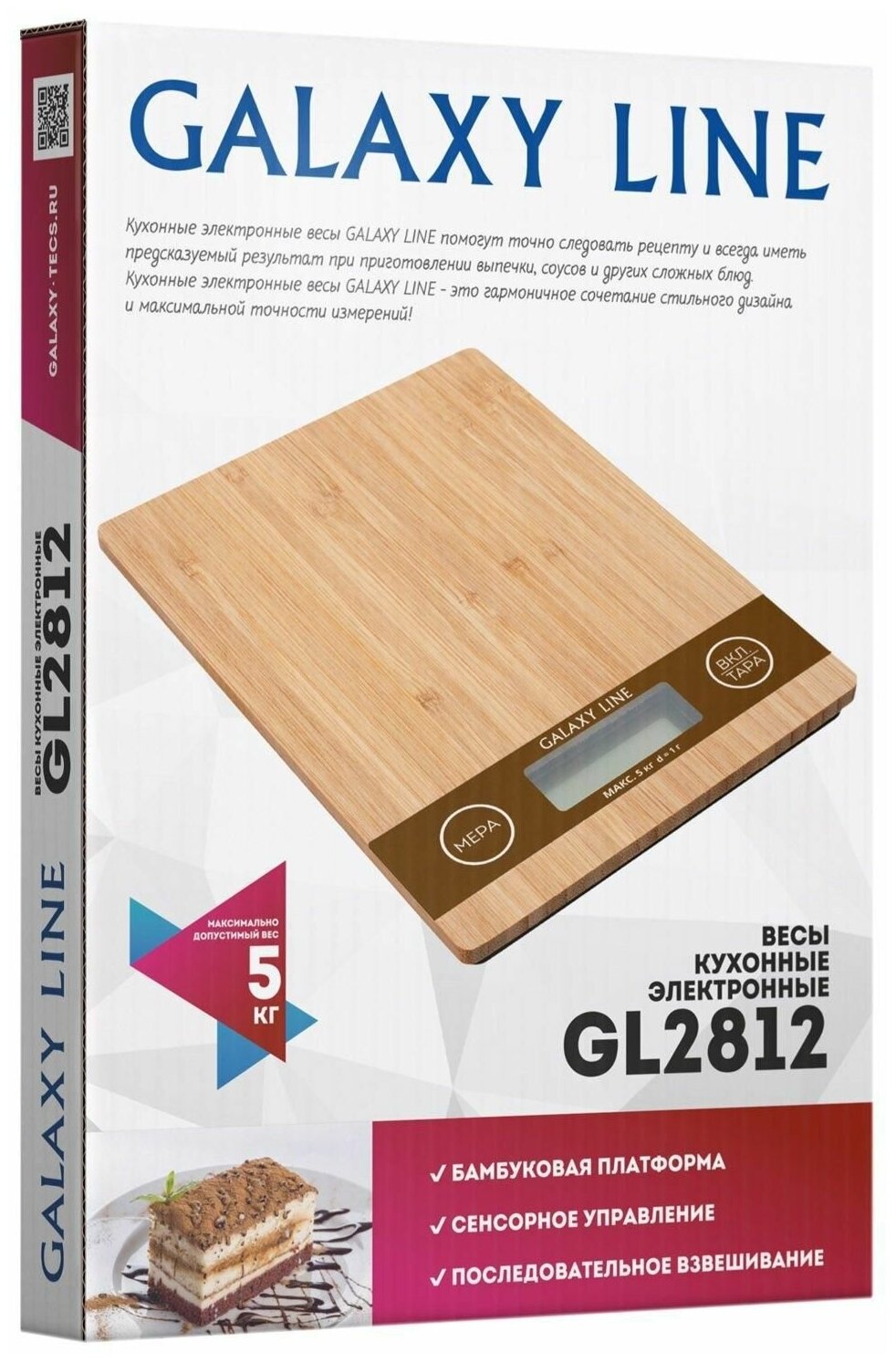 GALAXY LINE GL 2812 Весы кухонные электронные, элемент питания типа «ААА»,2шт. (в комплекте), бамбуковая платформа, сверхточная сенсорная электронная система Жидкокристаллический дисплей, максимально допустимый вес 5 кг, цена деления 1 функция обнуления м