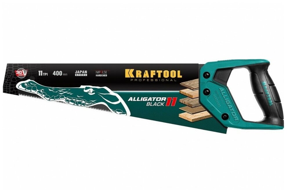KRAFTOOL Ножовка для точного реза "Alligator BLACK", 400 мм, 11 TPI 3D зуб, KRAFTOOL