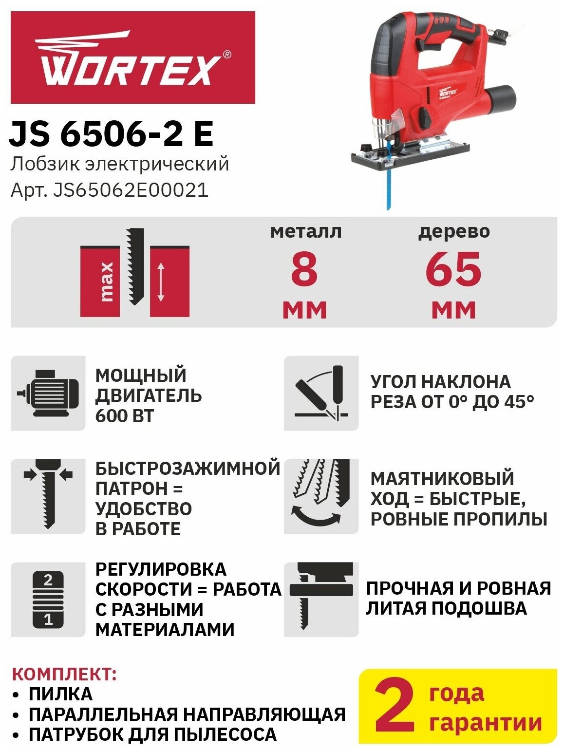 Электролобзик Wortex JS 6506-2 E 600 Вт интересное:
