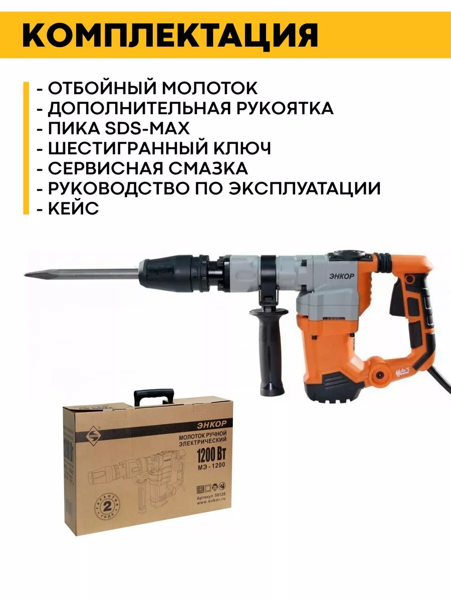 Ниже Вы можете прочитать отзывы на Электрический отбойный молоток Энкор МЭ-1200, 1.2 кВт, ознакомится с подробными характеристиками, посмотреть интересные обзоры и фотографии на Электрический отбойный молоток Энкор МЭ-1200, 1.2 кВт.