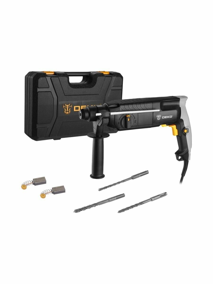 Перфоратор Deko Dkh850w в кейсе с набором из 3 буров SDS черно-желтый .