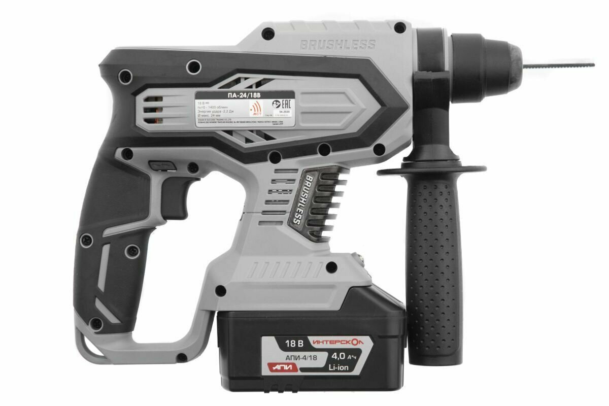 Профессиональный аккумуляторный бесщеточный перфоратор ИНТЕРСКОЛ ПА-24/18В АПИ, кейс, 1 аккум. 4Ач, ЗУ, 579.4.1.70